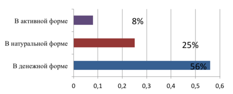 Следующие четыре вопроса позволяют непосредственно выявить предпочтения респондентов относительно различных методов стимулирования. Опрос показал, что в большей степени потребителей привлекает стимулирование в денежной форме (56%), то есть различного рода скидки. Метод стимулирования в натуральной форме был интересен 25% респондентов, в активной форме – 8%. Предпочтения относительно методов стимулирования отражены на рисунке 11.