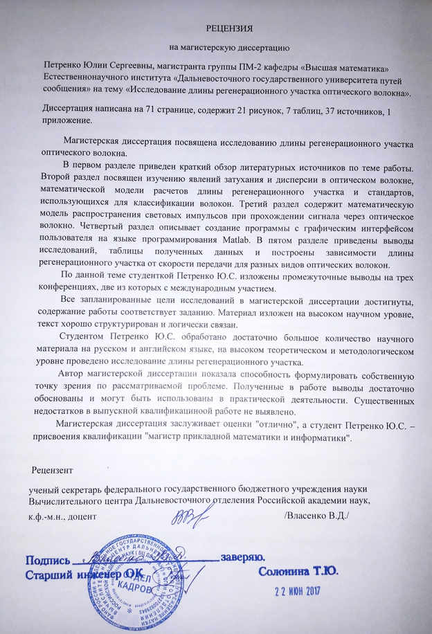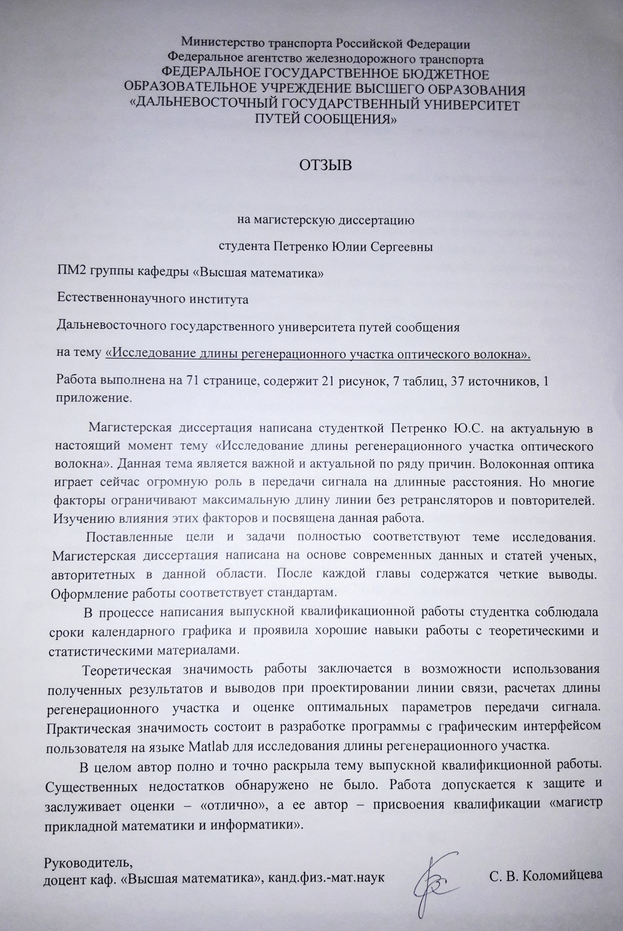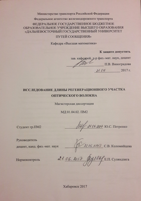 Основной целью магистерской диссертации является оценка влияния параметров волоконно-оптического тракта на длину регенерационного участка.