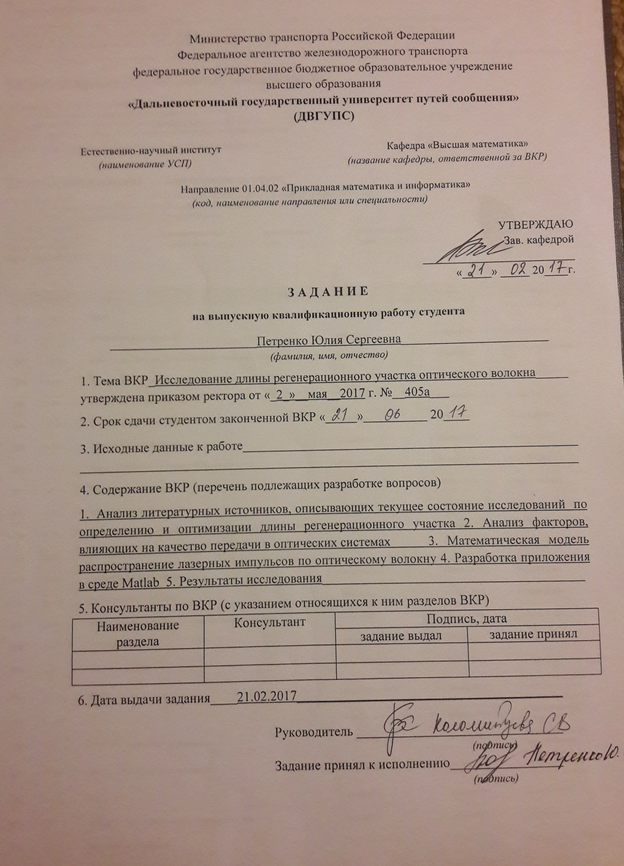 ОПТИЧЕСКОЕ ВОЛОКНО, ОДНОМОДОВОЕ ВОЛОКНО, ДЛИНА РЕГЕНЕРАЦИОННОГО УЧАСТКА, ДЛИНА ЛИНИИ, РАСЧЕТ РЕГЕНЕРАЦИОННОГО УЧАСТКА, ОПТИЧЕСКИЕ ИМПУЛЬСЫ, ПЕРЕДАЧА СИГНАЛОВ, ПАРАМЕТРЫ ПЕРЕДАЧИ, МОДЕЛИРОВАНИЕ РАСПРОСТРАНЕНИЕ ИМПУЛЬСОВ, ХАРАКТЕРИСТИКИ ОПТИЧЕСКОГО ВОЛОКНА, ГРАФИЧЕСКИЙ ИНТЕРФЕЙС ПОЛЬЗОВАТЕЛЯ, MATLAB