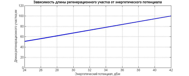 Рисунок 5.7 Зависимость длины регенерационного участка от энергетического потенциала