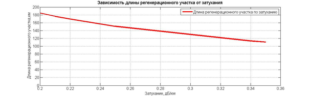 Исследуем, как зависит длина регенерационного участка от затухания. Полученный график представлен на рисунке 5.5.