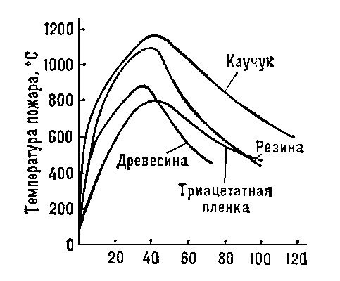 Рисунок 1.2 Температурный режим пожара при горении различных