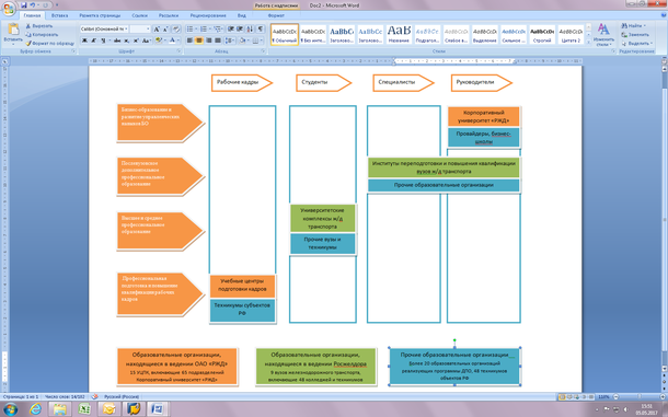 Данный рисунок показывает, что обучение в ОАО «РЖД» доступно на различных видах этапах жизни. Образовательные организации обучающие человека зависят от занимаемой роли в системе обучения ОАО «РЖД».