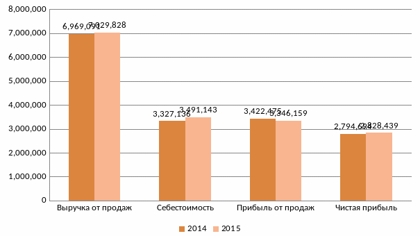 | Прибыль от продаж | 3 422 475 | 3 346 159 | - 76 316 | 97,7 | - 2,3 |