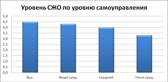 Рис.2.6 Соотношение уровня СЖО и САТ к уровню самоуправления