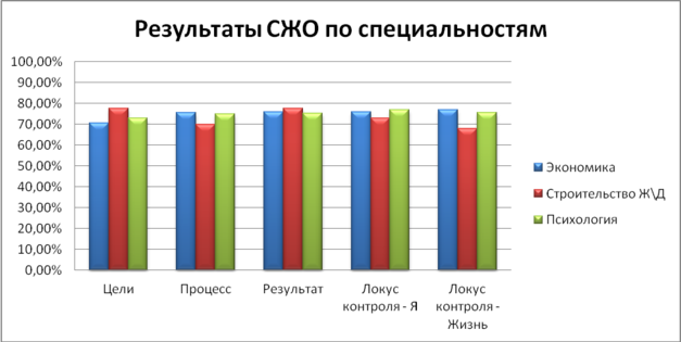 Рис.2.4 Результаты тестирования по методике СЖО по специальностям