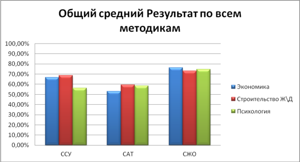 Рис.2.5 Результаты тестирования по трем методикам (ССУ, САТ, СЖО)