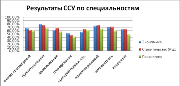 Рис.2.2 Результаты тестирования по методике ССУ по специальностям