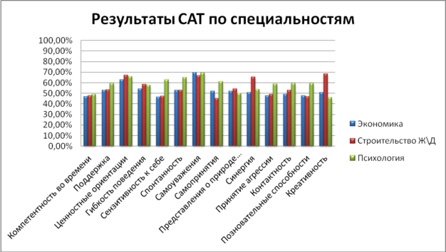 Рис.2.3 Результаты тестирования по методике САТ по специальностям