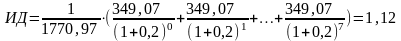 Индекс доходности больше единицы, следовательно, проект эффективен. Индекс доходности характеризует эффективность вложений, чем больше значение этого показателя, тем выше отдача каждого рубля инвестированного в данный проект.