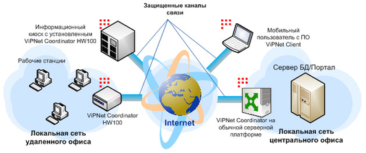 Совместно с другими программными продуктами из состава комплекса ПО ViРNet CUSTOM ViРNet Coordinator HW 100 обеспечивает эффективную реализацию множества сценариев защиты информации: