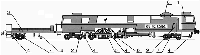 Машина DUOMATIC 09-32 CSM – это самоходная машина непрерывно-циклического действия, предназначена для выполнения выправочно-подбивочных и рихтовочных работ при текущем содержании и всех видах ремонтов пути. Принцип работы машины циклический, но при работе машина движется по пути непрерывно за счет оригинальной конструкции крепления подбивочных блоков на спутнике.