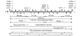 На границах скорректированных участков располагаются станции с размещенными на них пунктами технического обслуживания (ПТО-У, ПТО-У и ПОТ).