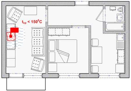 , чем больше его изоляция от наружного воздуха, тем дольше I фаза пожара. Первая фаза представлена на рисунке 1.3.