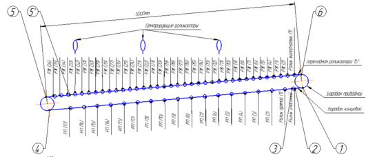 2, 4, 5 – Отклоняющие барабаны;