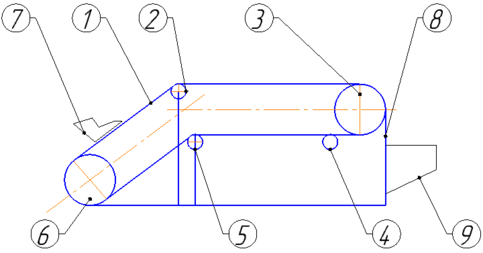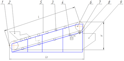 Рис. 1 Схема наклонного ленточного конвейера