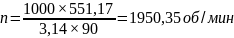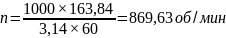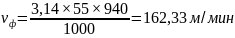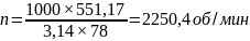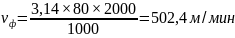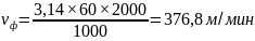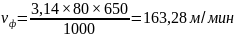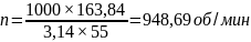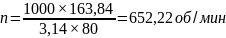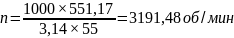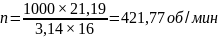 Частота вращения шпинделя определяется по формуле 3.31, об/мин: