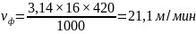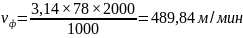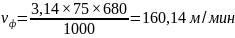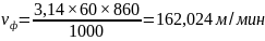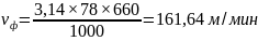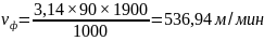 Находим фактическую скорость резания по формуле 3.32: