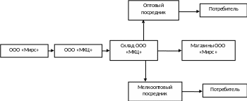 Как видно из рисунка, склад ООО «МКЦ» является распределительным центром не только для магазинов ООО «Мирс», но и для оптовых и мелкооптовых посредников.