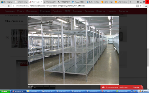 Общий вид стеллажей «Макстор», установленных на складе ООО «Мирс Канцтовары»