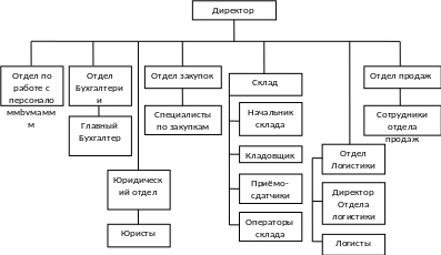 Организационная структура является линейной. Она образуется в результате построения аппарата управления в виде иерархической лестницы, т.е. каждый подчинённый имеет одного руководителя, а руководитель имеет несколько подчинённых. Два руководителя не могут непосредственно связываться друг с другом, они должны это сделать через ближайшую вышестоящую инстанцию.
