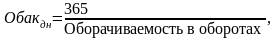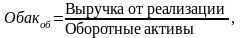Оборачиваемость оборотных активов, оборотов расчитеам по формуле (17):