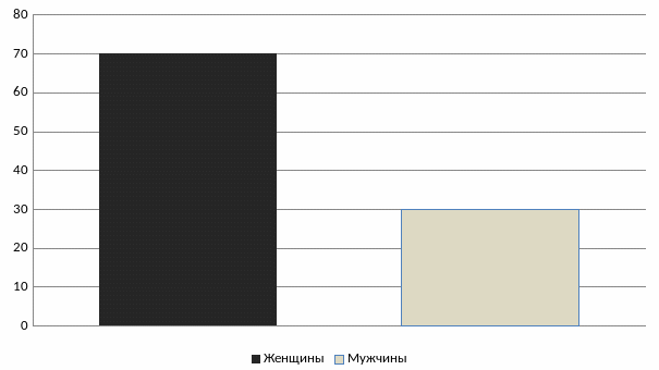 Из представленного рисунка видно, что большую часть от всей численности работников представлена женской половиной – примерно 70%. Скорее всего это обусловлено тем, что на должности официанта и администратора предпочтительнее работают девушки/женщины.