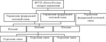 Подробно рассмотрим организационную структуру управления ФГУП «Почта России» ниже. Как видно графически организационная структура разделена на четыре основных вертикальных уровня управления: