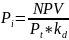 Принимая во внимание результаты проведенных исследований деятельности ФГУП «Почта России», а также как показывают расчеты и прогнозы, для расчета чистого дисконтированного дохода (NPV), нами отмечено, что минимальный размер увеличения выручки в 2015г. будет – 2%. Далее, расчет коэффициента дисконтирования (kd) проводится по каждому году по формуле (1):