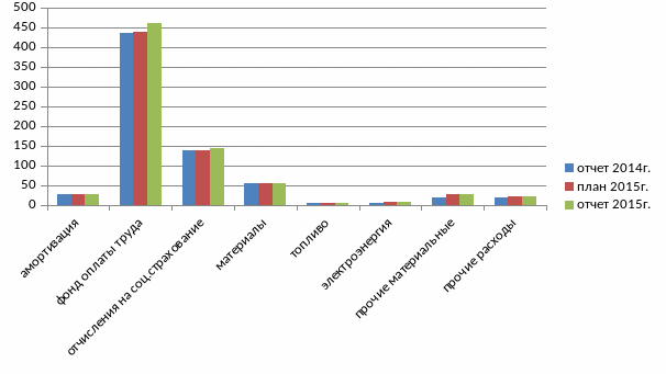 Элемент «амортизация» за отчетный период выполнен в полном объеме. При анализе отчетных показателей за 2014г. и 2015г. отмечено снижение расходов по данном элементу на 8,7 процентов, основной причиной снижения является изъятие из пользования некоторой части основных фондов.