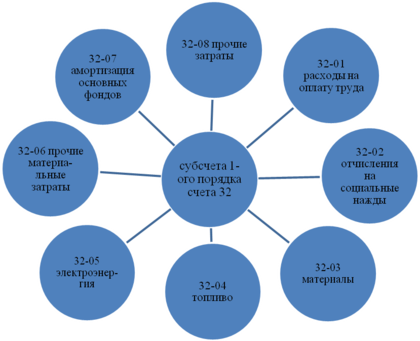 Рисунок 3 – Структура счета 32 «Расходы» с использованием субсчетов второго порядка