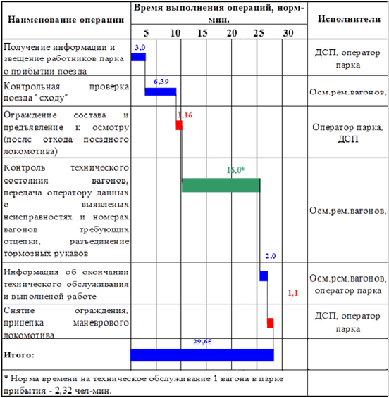 Норматив времени на осмотр 1 вагона – 2,32 чел/мин;