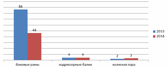 - 86 боковых рам с дефектами и трещинами (68 - забракованы; 17 -годные).