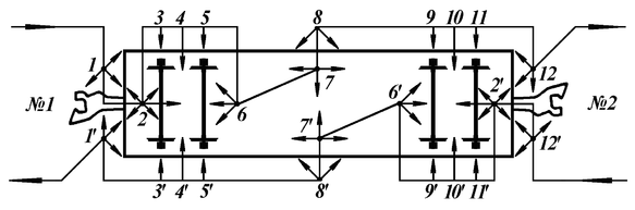 Контроль технического состояния четырехосного вагона осуществляется ОВР с двух сторон. Порядок осмотра представлен на рисунке 2.6.