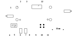 1 - ДИСК; 2 - светофор; 3 - колонки двухсторонней парковой связи; 4 - площадка для стоянки дрезины; 5 - дрезина с приводом; 6 - помещение для обогрева работников;7 - стеллаж для запасных частей; 8 - тупик текущего ремонта; 9 - путь для хранения колёсных пар; 10 - кран-балка; 11 - стационарные домкраты; 12 - помещение дежурного по станции