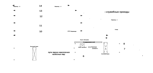 − тупик №10,12 ,13,14 предназначен для накопления неисправных вагонов.