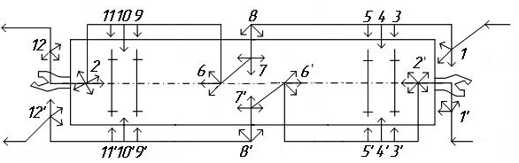 Рисунок 2.10 - Схема расстановки ОВР при пятом проходе 7 группами