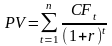 PV — современная стоимость денежного потока на протяжении экономической жизни проекта.