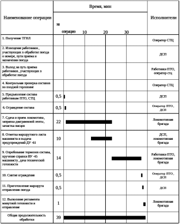 Обработка состава транзитного поезда без переработки в парке прибытия состоит из следующих операций: