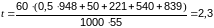 где lп – длина встречного поезда, lп = 948 м; lв– расстояние, проходимое встречным поездом за время восприятия машинистом показания сигнала с момента его открытия, lв = 50 м; lвх –расстояние от входного сигнала до ближайшего сигнала расположенного при входе на путь приема, lвх = 221 м; lпол – расстояние от выходного сигнала до оси парка, lпол = 540 м; lмо– расстояние между осью станции и расчетной осью раздельного пункта, lмо = 839 м; V – скорость движения поезда, V=55 км/ч.