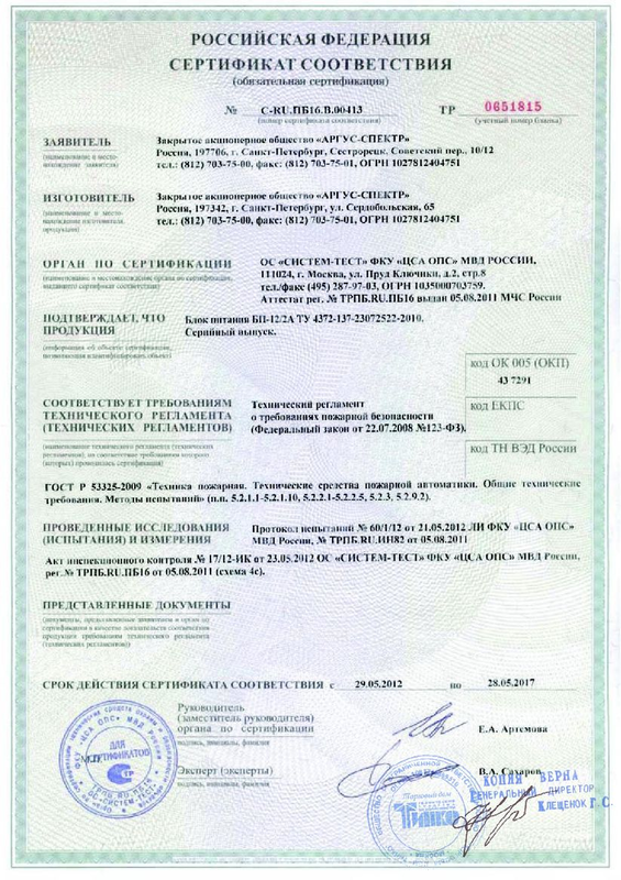Рисунок А.1 Сертификат соответствия блока резервного питания БП-12/2А