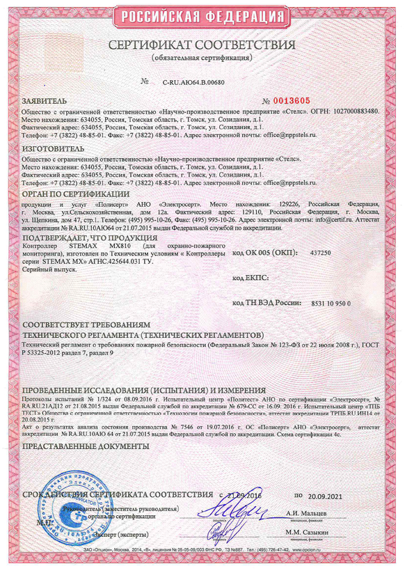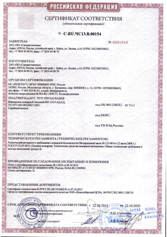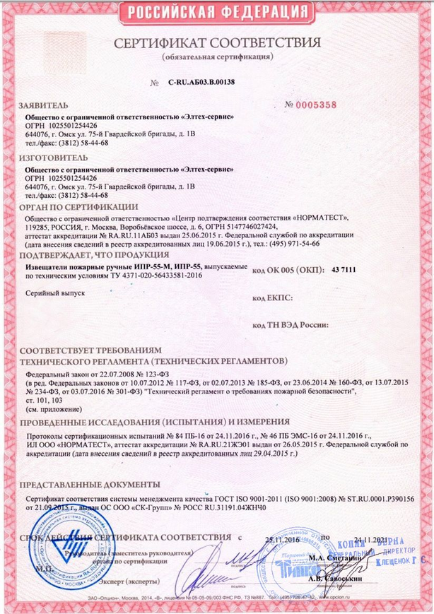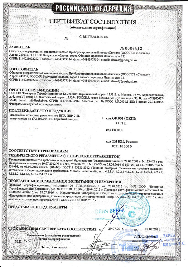Рисунок А.5 Сертификат соответствия извещателя пожарного ручного