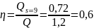 т. е. коэффициент полезного использования расхода при данном оросителе на площади Fop = 9 м2: