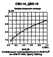 Поскольку согласно графику кривая на начальном участке (до 0,2 МПа) имеет больший угол наклона, то, следовательно, на этом участке и коэффициент производительности К должен иметь несколько большее значение, вследствие чего принимаем q = 1,2 л/c.