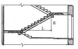 Уклон определяется соотношением H / L , например, если H =1,5м, L=3м, уклон лестницы составляет 1:2