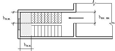 Рисунок 3.3 Ширина лестничного марша b л.м, ширина лестничной площадки b л.м и ширина входа в лестничную клетку b вх. лк.
