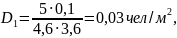 Плотность однородного людского потока на первом участке пути D1 рассчитывается по формуле (2.1):