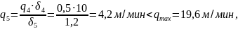 q1 = 5 м/мин – значение интенсивности движения людского потока на первом участке пути, определяемое по значению D1.