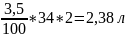 Vмот.м= 1,4+1,4+2,38=5,18 л
