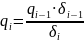 где δ1, δi-1 - ширина рассматриваемого i-го и предшествующего ему участка пути, м;